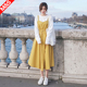 17夏韩版优雅气质宽松显瘦荷叶边系带纯色吊带裙雪纺连衣裙中长裙