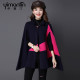 2016秋冬宽松蝙蝠袖针织开衫女拼色毛衣外套韩版简约针织斗篷披肩