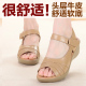 凉鞋女夏季2017新款厚底坡跟中老年凉鞋真皮休闲大码中年妈妈凉鞋