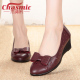新款春秋真皮鞋牛皮浅口休闲鞋妈妈鞋单鞋平底坡跟软底中老年女鞋