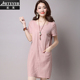 大码夏装2017新款胖MM遮肚子绵绸棉绸棉麻连衣裙韩版藏肉显瘦裙子