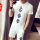 男士夏季休闲套装短袖男青年时尚潮流大码T恤 男学生修身款运动服