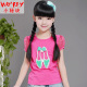 小秘诀2016夏季新款 女童纯棉T恤中大童钉珠图案镂空韩版T恤夏装