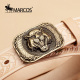 马诃士 虎头铜扣百搭腰带 平滑扣原色雕花纹休闲整张头层牛皮皮带