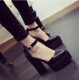 2015春欧美厚底气质百搭黑色尖头高跟女单鞋防水台粗跟一字搭扣