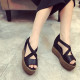 2017夏季新款交叉带坡跟凉鞋女欧美风复古厚底防水台高跟罗马鞋潮
