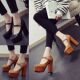 韩版英伦范儿厚底鞋圆头超高跟鞋2015春季新款粗跟高跟防水台单鞋