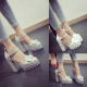 2016夏季新款韩版蝴蝶结包头粗跟凉鞋防水台一字扣中空超高跟单鞋