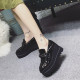 2017春秋款英伦风松糕厚底女单鞋系带坡跟镜面皮低帮鞋方头休闲鞋