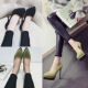 欧洲站2017夏新款套脚粗跟单鞋女圆头浅口性感绿色高跟鞋绒面瓢鞋