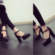 太阳的后裔宋慧乔明星同款高跟真皮粗跟防水台裸色增高罗马女凉鞋