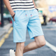 2017夏季新款沙滩裤男士五分裤修身潮流纯棉短款松紧腰休闲中裤子