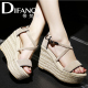 帝梵奇2017真皮坡跟凉鞋女夏季厚底松糕鞋女一字带罗马高跟女鞋