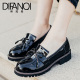 帝梵奇小皮鞋女春季英伦风厚底圆头松糕鞋漆皮复古单鞋真皮女鞋