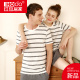 情侣睡衣夏季纯棉女士短袖短裤红豆条纹薄款全棉男休闲家居服套装