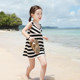 夏季女童露肩纯棉连衣裙中大儿童一字领钉珠短袖条纹公主裙亲子裙