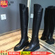 欧洲站秋冬女靴真皮马靴坡跟长筒靴加绒内增高靴子女平底过膝长靴