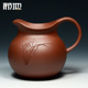 宜兴紫砂壶配件功夫小茶杯纯紫泥全手工大号刻绘茶具曲线公道杯