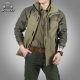 战地吉普男士春秋季多口袋中长款夹克青年大码休闲户外连帽外套男