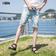 休闲薄款5分中裤夏季宽松五分裤 大码直筒破洞牛仔短裤男士潮夏天