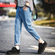 牛仔裤男小脚 修身型哈伦裤男直筒 韩版破洞裤子男青少年九分裤潮