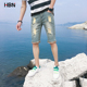 夏季破洞牛仔短裤男五分裤修身直筒乞丐5分裤弹力学生中裤潮薄款