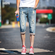 夏季七分裤男破洞男士7分裤青年韩版修身小脚短裤男夏天潮牛仔裤