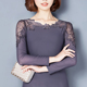 蕾丝衫女长袖t恤修身大码雷丝打底衫拼接镂空女上衣圆领体恤
