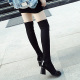 秋冬季高筒靴弹力布过膝靴高跟长靴瘦腿粗跟女式性感显瘦长筒靴子