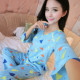 长袖可爱女士纯棉绸绵绸家居服夏秋季人造棉布睡衣薄款套装空调服