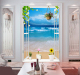 客厅过道走廊玄关背景墙壁纸欧式墙纸油画大型壁画蓝天大海3D转角