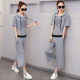 运动套装女夏休闲服三件套韩版七分裤阔腿裤英伦风宽腿裤潮2017