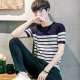夏季 圆领冰丝短袖针织衫男士T恤韩版紧身夏装上衣服条纹打底衫潮