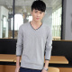 男士秋季V领纯棉长袖T恤青少年男薄款休闲修身纯色体恤打底衫男装
