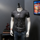 欧洲站短袖T恤男夏天新品几何数码黑色修身骷髅头短袖上衣半袖男