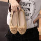 韩版平底圆头女单鞋蝴蝶结一脚蹬懒人女鞋驾车休闲鞋草编渔夫鞋