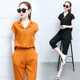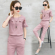 2017夏季新款韩版名媛气质短袖两件套时尚套装女修身显瘦小脚裤潮