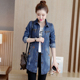 2017春秋新款韩版中长款破洞牛仔风衣女装时尚宽松印花长袖外套潮