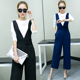 2017夏装新款连体背带裤女韩版气质九分阔腿裤套装休闲裤两件套潮