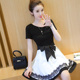 2017夏装新款短袖时尚连衣裙韩版蕾丝拼接小清新学院风A字裙女潮