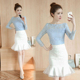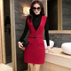 2017新款长袖打底衫时尚V领马甲背带裙毛呢连衣裙修身三件套装女