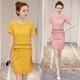 2017夏季新款气质短袖蕾丝衫上衣修身包臀半身短裙时尚两件套装女