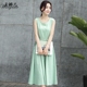 2017夏季新款文艺范无袖圆领中长款纯色修身连衣裙棉麻显瘦背心裙