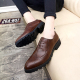 秋季英伦风休闲皮鞋布洛克正装男鞋商务青年尖头系带男士增高潮鞋