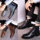 韩版雕花马丁靴男士英伦加绒高帮皮鞋男发型师中帮男鞋内增高靴子