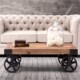 美式复古工矿家具 怀旧cafe桌椅可移动茶几 铁艺茶几 车轮咖啡桌