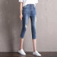 薄款弹力七分牛仔裤女夏高腰修身显瘦七分裤铅笔裤大码小脚裤女裤