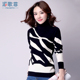 纯羊毛衫女 秋冬新款高领显瘦针织衫毛衣长袖套头花纹修身打底衫