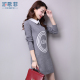 2017春装新款女装中长款针织衫衬衫领拼接打底衫女宽松长袖毛衣潮