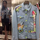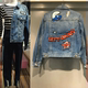 2016秋季新款欧美大牌贴布卡通图案亮片破洞磨破宽松牛仔外套短款